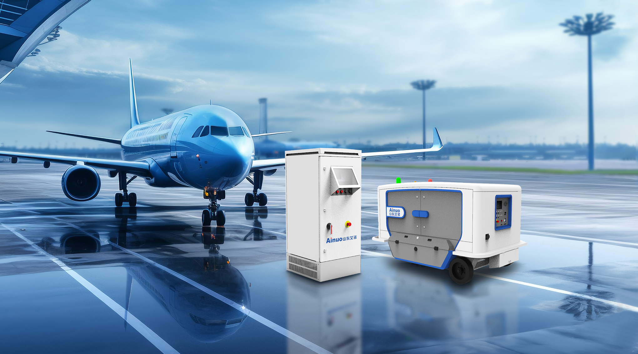 山東艾諾研發生產28V飛機地面靜變電源,270V飛機地面靜變電源,儲能式飛機地面靜變電源,115V 400Hz地面靜變電源,產品主要應用于機場近機位、遠機位、維修機庫、機場停機坪等集中停靠飛機的場所供電使用。
